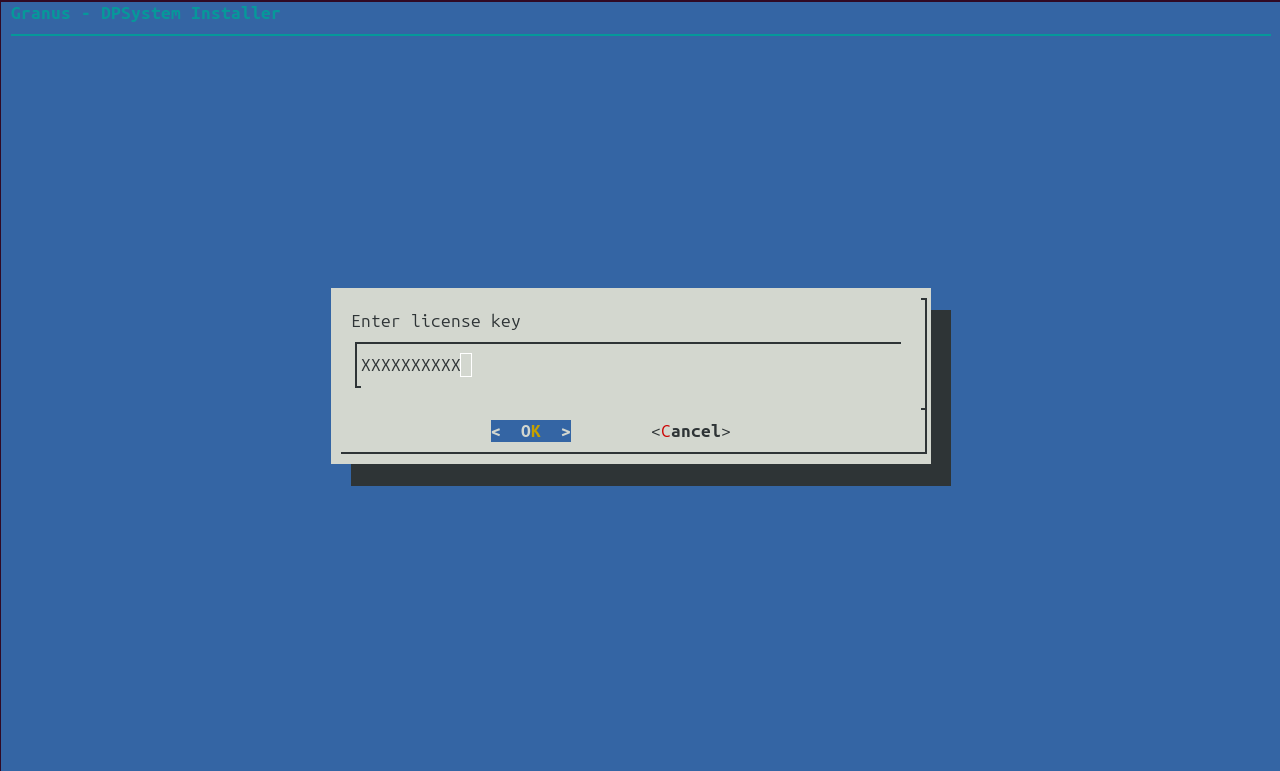 sudo /opt/granus/sbin/register -license XXXXXXXXXX